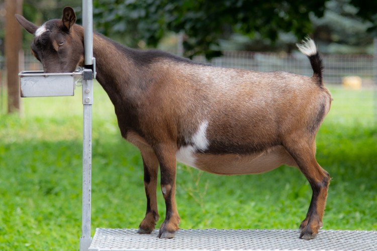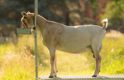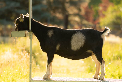 A note on our milkstand photos: I have back problems and getting good photos of the goats requires more patience and stamina than I possess. I have settled on milk stand photos because the goats are posed naturally (which I think is much more revealing than pinching and manipulating) and they enjoy a treat while I snap a pic. All of our goats are well-trained to the milk stand, so it’s a low-stress win for all, and it in no way implies they are unfriendly.