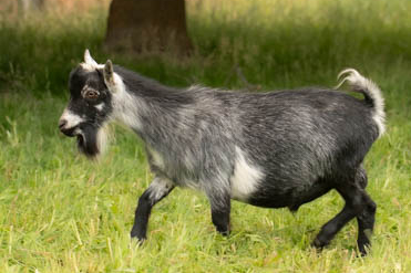 Pepper is linebred on the famous Springwater BL Janie’s Got a Gun (Frosty). I find that linebred bucks are genetically prepotent, helping lock in those desirable traits. He should help us with udder texture, rump width, teat length, and so much more. Pepper is on the smaller side (which is good), but I’m so excited about how he is filling out. He’s turning into a very nice buck, and I like his overall structure. I’m super excited about the udders in his line and the possibility of getting more of the same. In addition, the more he grows, the more correct he seems to get. His legs are extremely correct and perfectly straight, with short pasterns. His hooves are very easy to maintain because of his correct structure. I love his topline, his head, his strength, his increasing depth with age, his flat bone patterning, his blending, his rear leg angulation…the list just goes on. I am so happy with this guy! Plus, I think his roaning is just adorable.
